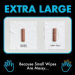 - EXTRA LARGE FLUSHABLE WIPES: When it comes to flushable wipes, size matters. And we’re big. Up to 35% larger than the other guys. Because nobody wants a little wipe after a big burrito